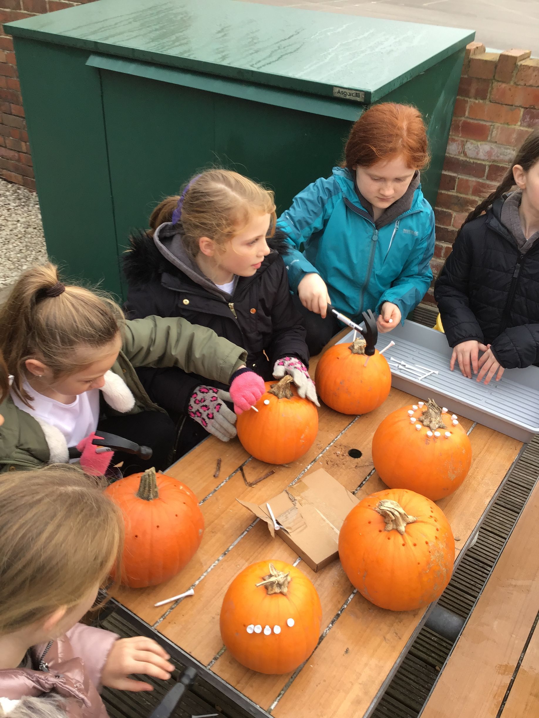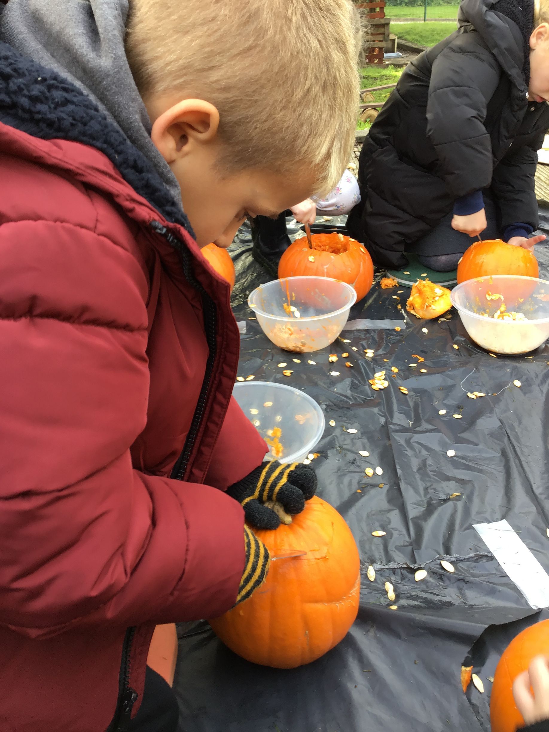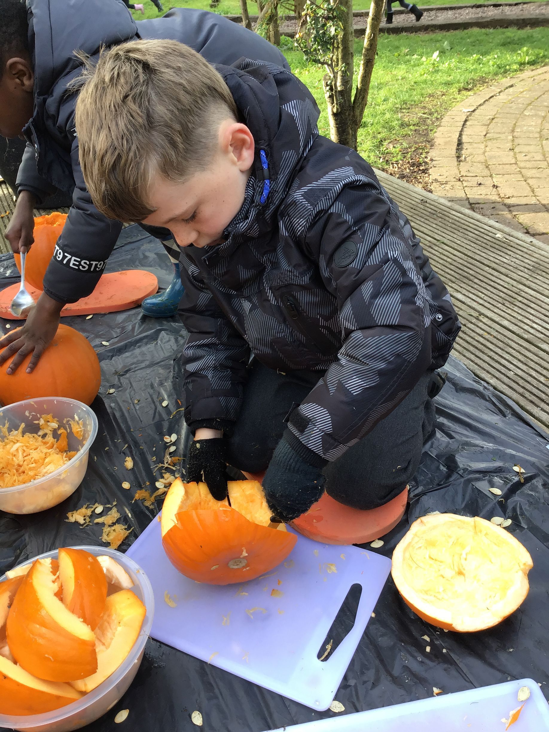 Part of our Forest School curriculum explores nature's treasures and teaches outdoor skills. The children embraced the delights the season of Autumn offers and started their Forest School session with a hunt for their favourite Autumn treasure. They then learnt skills including cutting with a sharp knife, carving with a spoon and how to use a hammer. Class 4 and Class 5 enjoyed a fire with a toasted marshmallow. What a lovely day had by all. Every class returned with enough pumpkin to try a recipe or two. We can't wait to try what they come up with later in the week, fingers crossed!