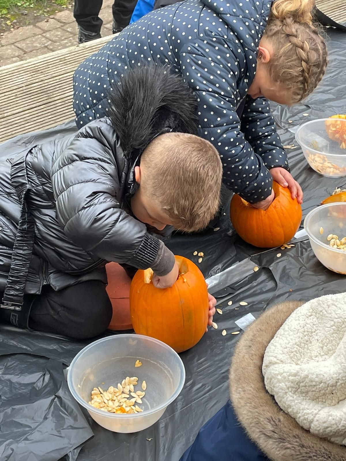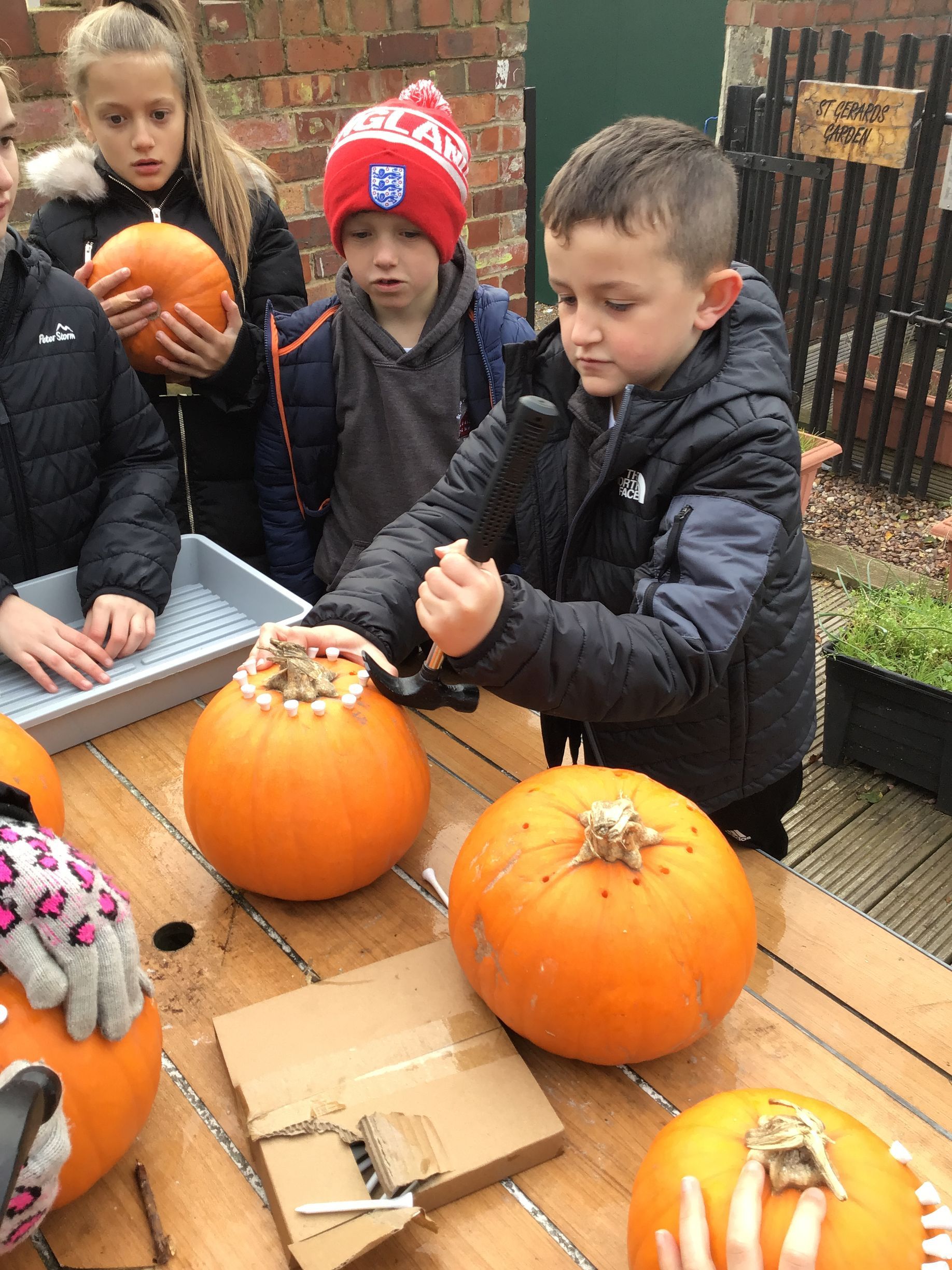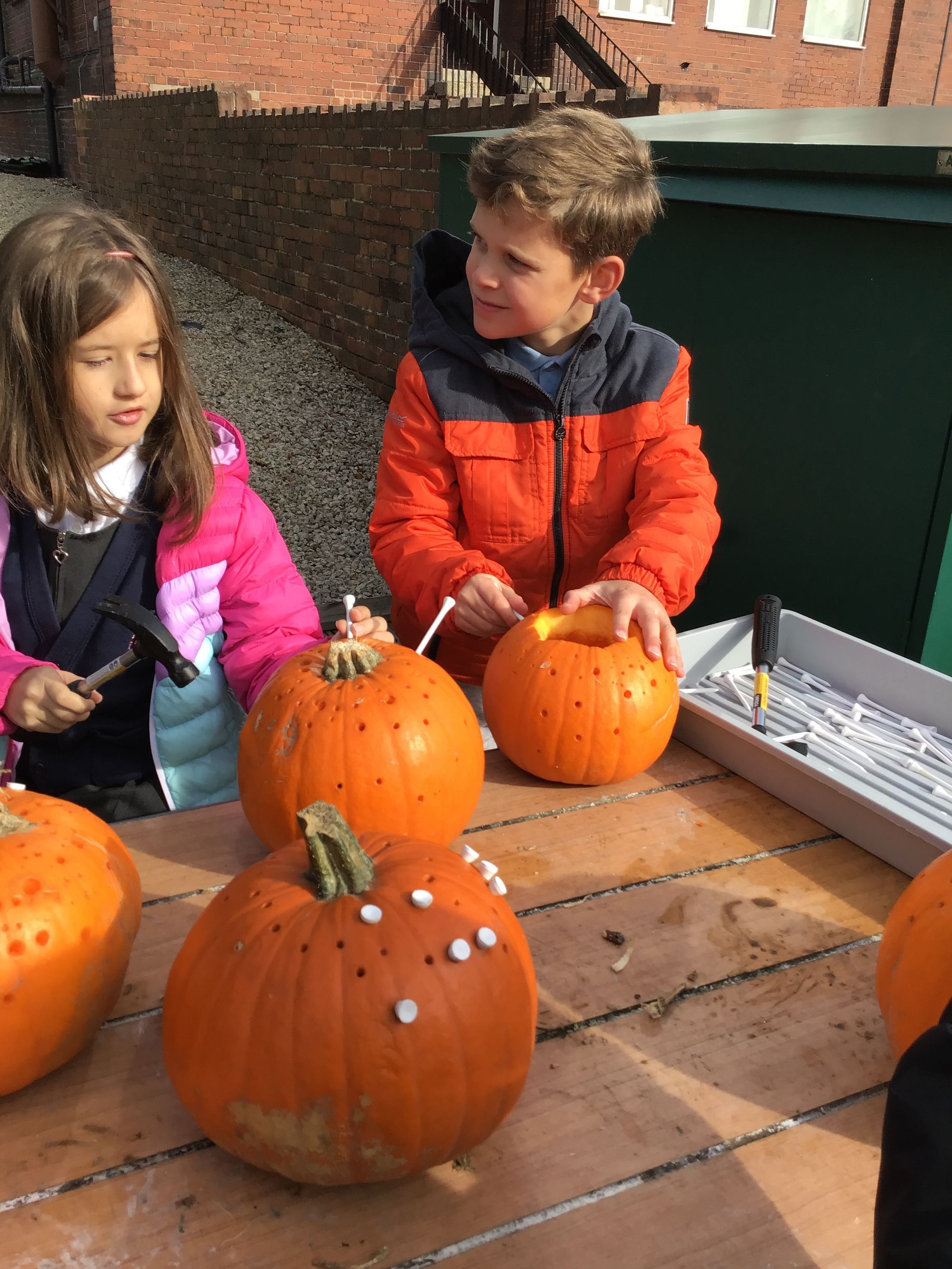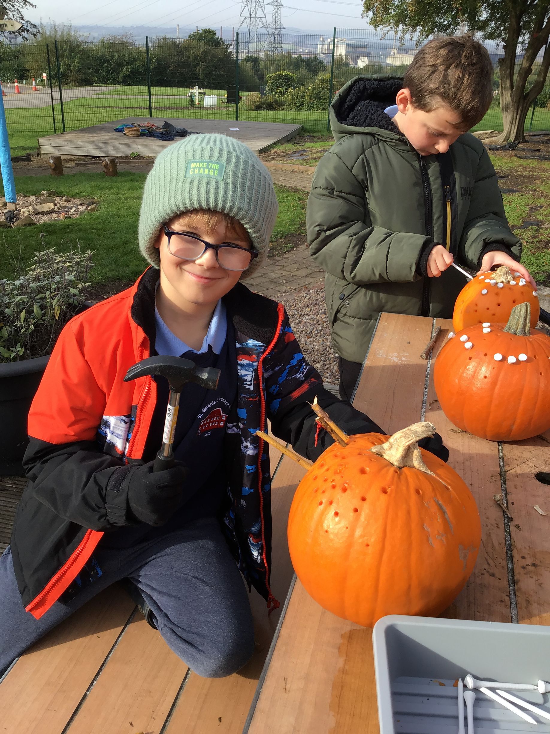 Part of our Forest School curriculum explores nature's treasures and teaches outdoor skills. The children embraced the delights the season of Autumn offers and started their Forest School session with a hunt for their favourite Autumn treasure. They then learnt skills including cutting with a sharp knife, carving with a spoon and how to use a hammer. Class 4 and Class 5 enjoyed a fire with a toasted marshmallow. What a lovely day had by all. Every class returned with enough pumpkin to try a recipe or two. We can't wait to try what they come up with later in the week, fingers crossed!