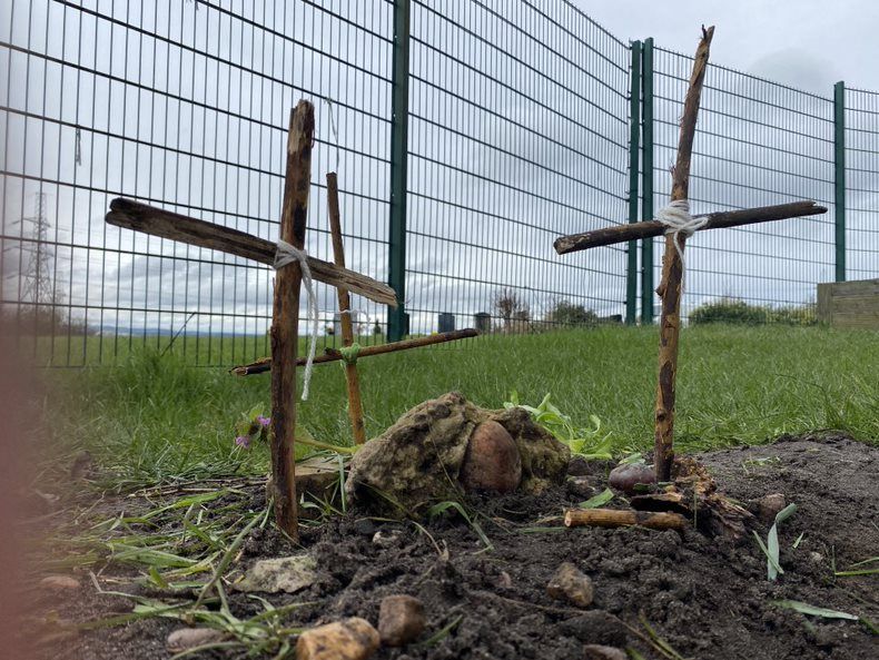 Class 2 and Class 3 explore Jesus' cross outside