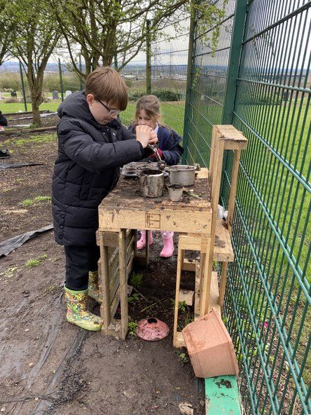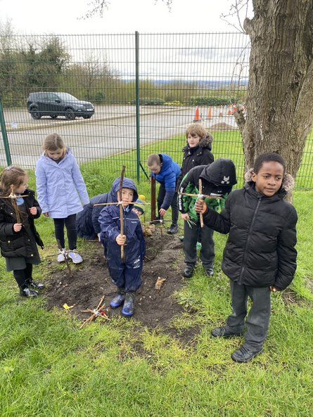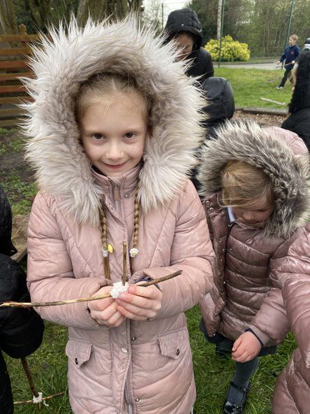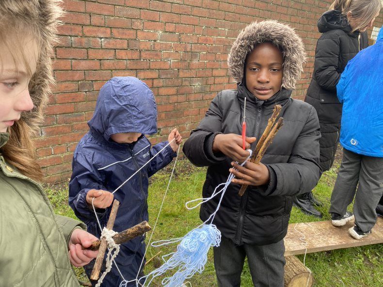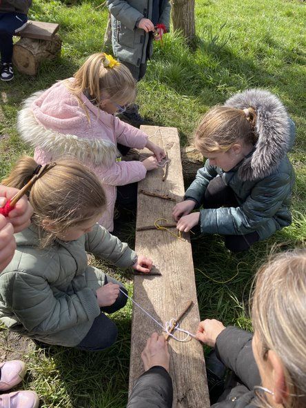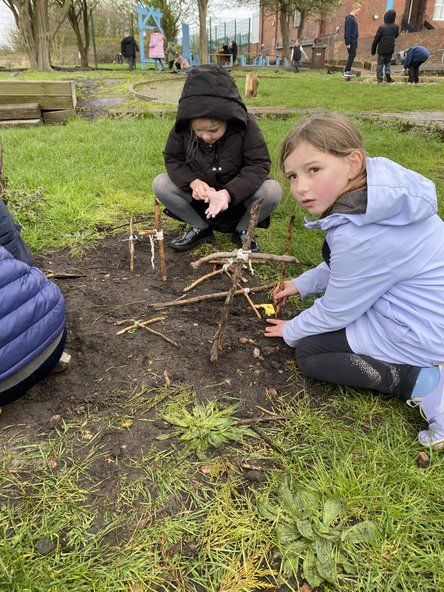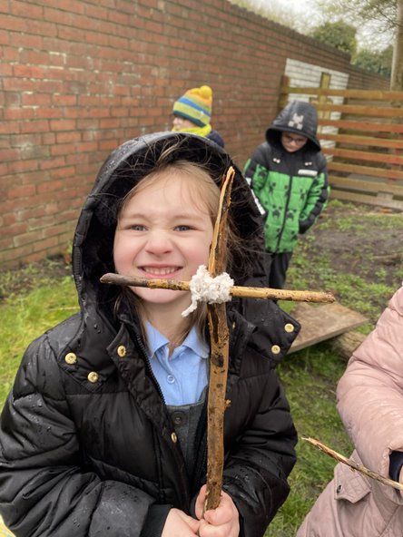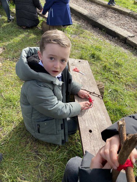 Children in Class 2 and 3 came together for a Forest School session today. They were taught how to do a Clove Hitch know to attach a piece of wool to a stick. They then wound wool around diagonally to join a short stick to a long stick to make Jesus' cross. Lot's of talk was had about Jesus and some children worked together to make a resurrection garden. We ended our session with hot chocolate.