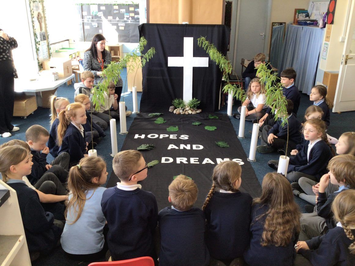 Everyday our St. Gerard's family have gathered together and prayed the Stations of the Cross before the start of school. It has been lovely to be joined by so many families and has helped the children reflect on Jesus journey to the cross. To end our Holy Week together, we had thinking stops in every classroom and children, joined by their parents, visited each thinking stop and reflected on it's significance in the Easter Story. Thank you to everyone who came, it truly was wonderful to pray with you all. We'd like to wish each and every member of our St. Gerard's Family a blessed Easter together.