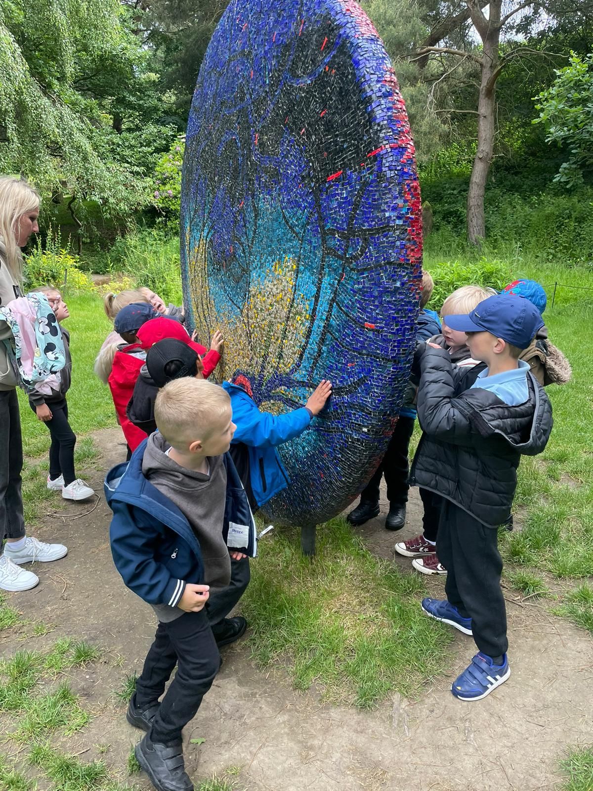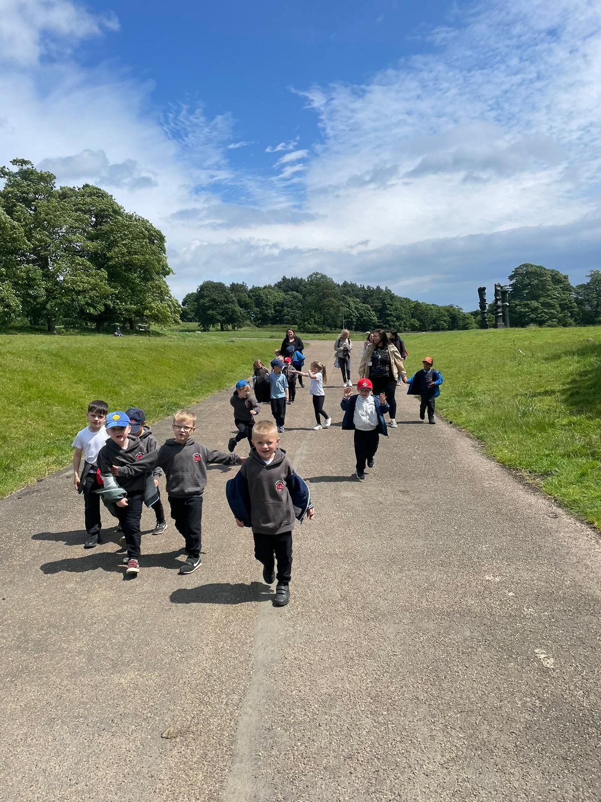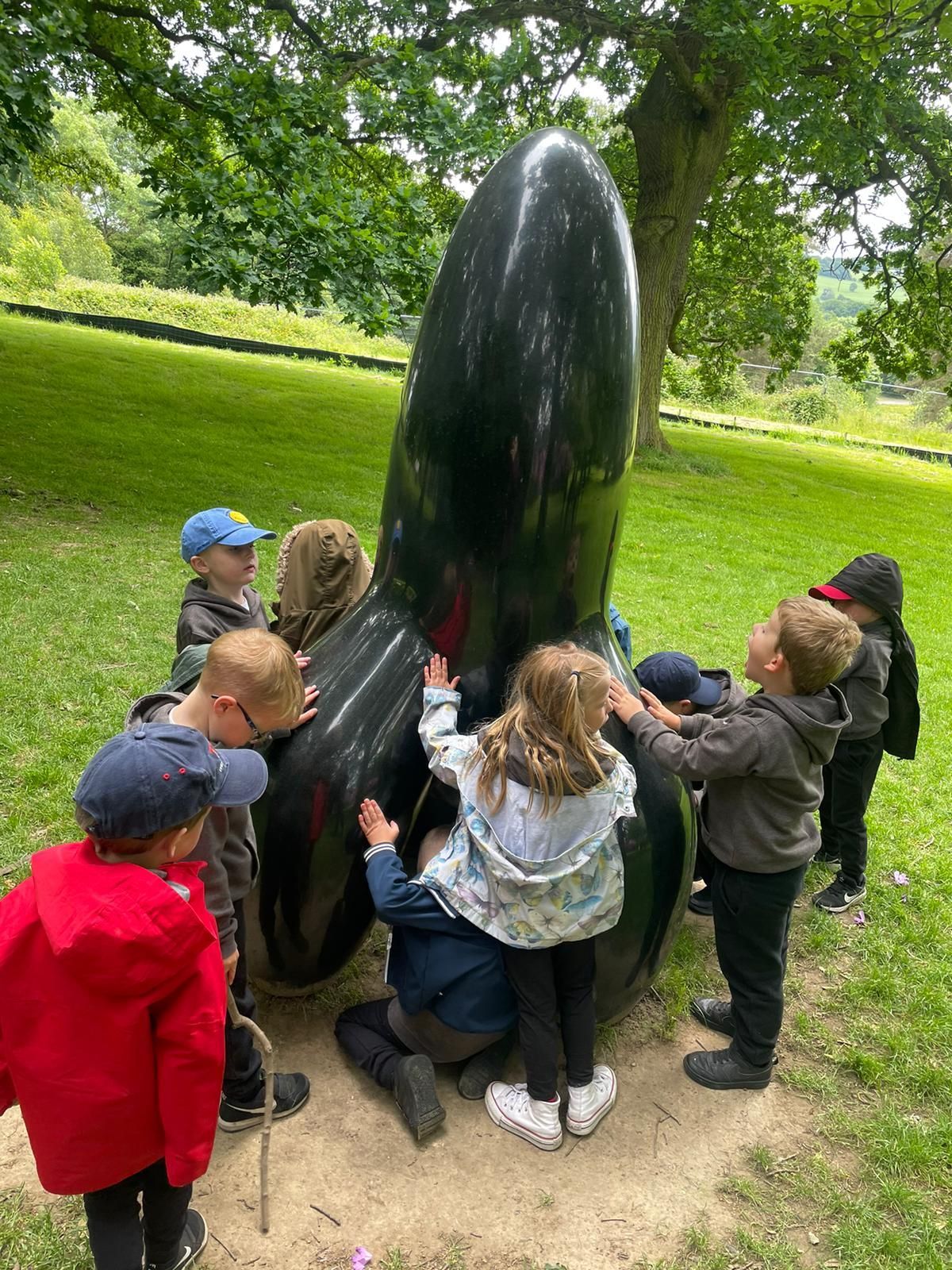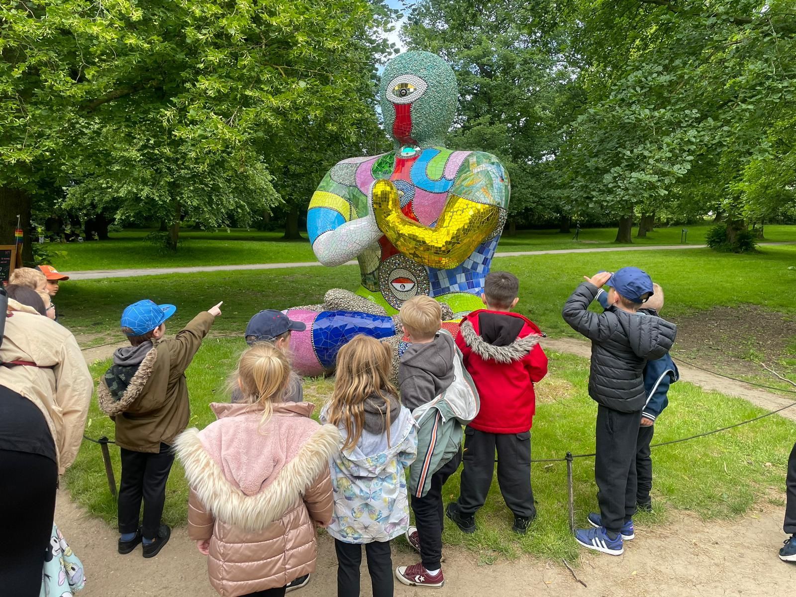 Class 1 saw some amazing sculptures today to inspire their artwork, including "a rainbow man" and "a rocket or a banana peel". They all laughed on the HaHaHa bridge and enjoyed time in the obstacle course. We're all looking forward to seeing what they create themselves in a few weeks time.